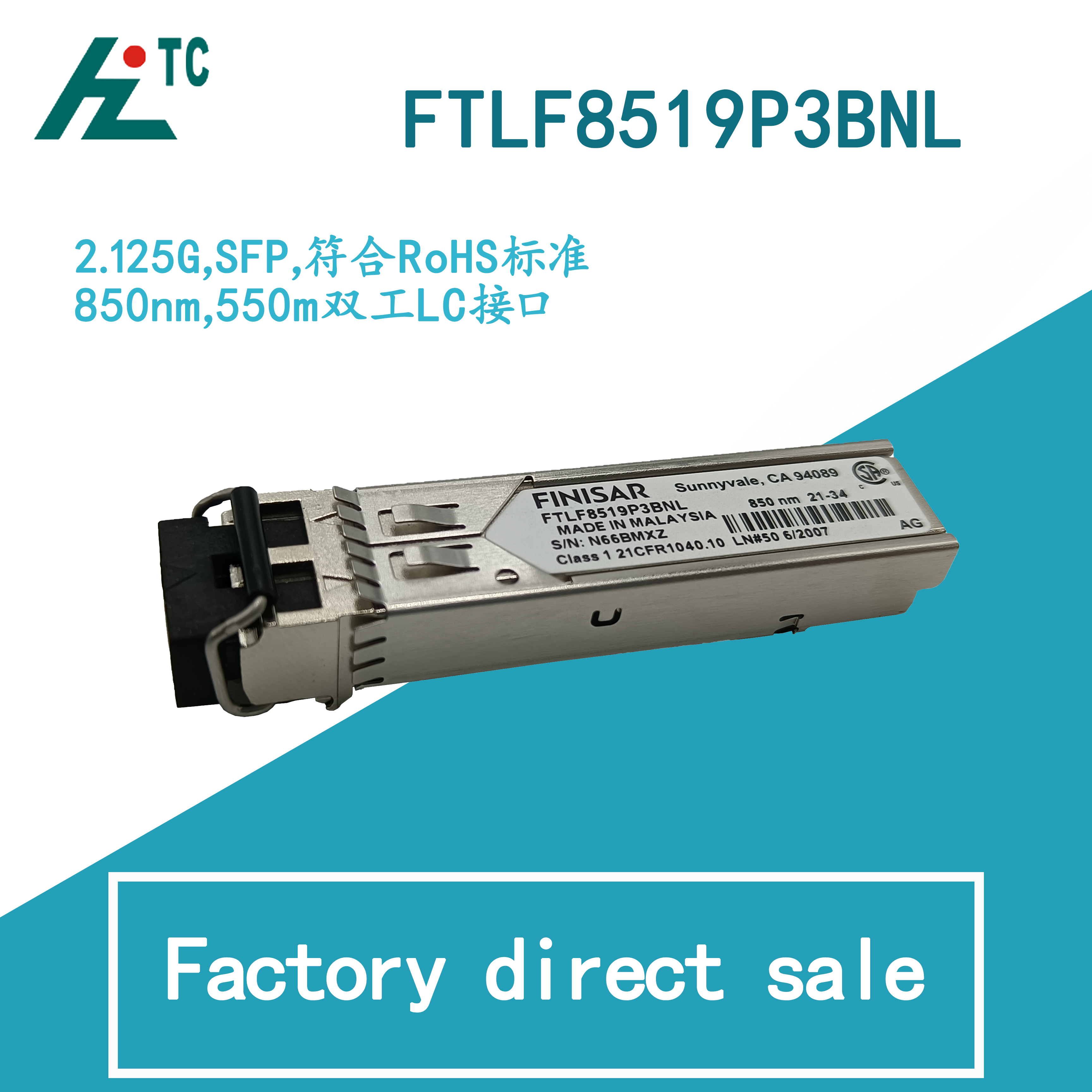 收发器模块 通用 2.125Gbps 850nm 3.3V LC 双工 可插入式,SFP
