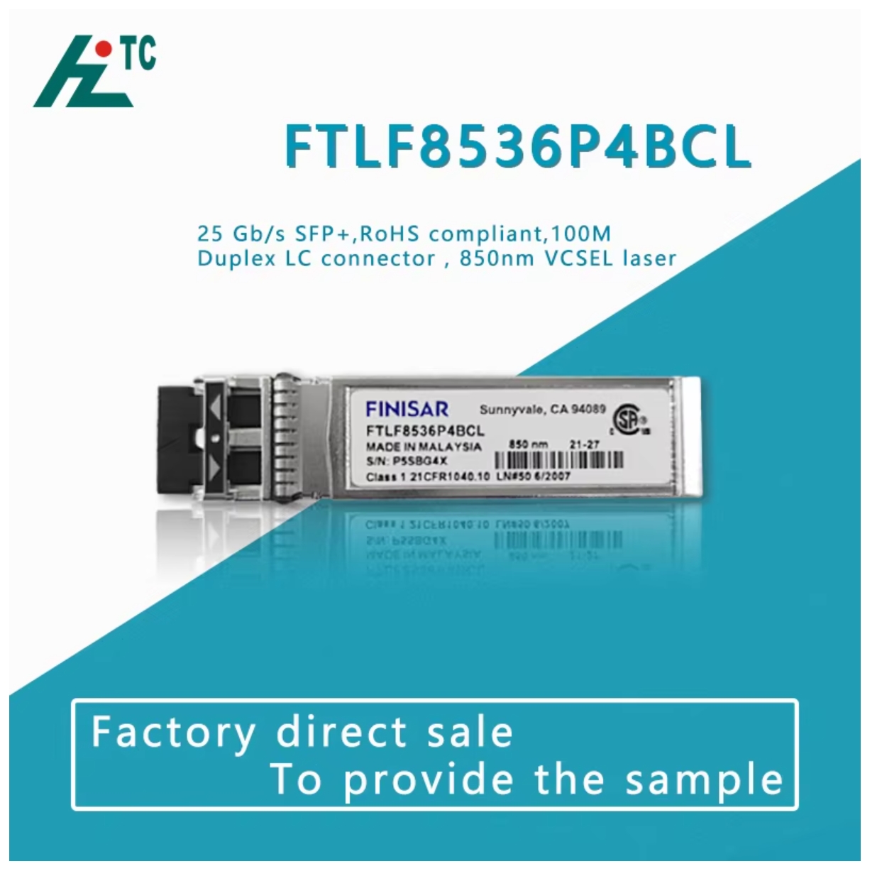 收发器模块 通用数据传输 25.78Gbps 850nm 3.3V LC 双工 可插入式,SFP+