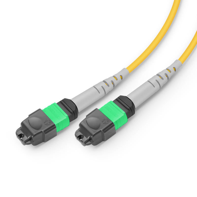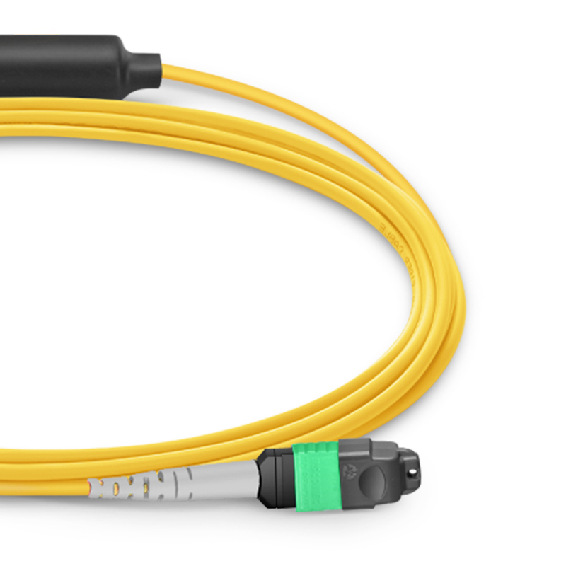 MTP-12 APC转2xMTP-4 APC转换跳线中的MTP-12连接器仅使用MTP-12的8根有效光纤进行传输,其余4根未使用